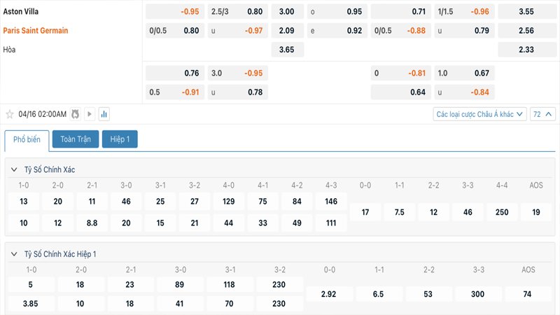 Tỷ lệ kèo châu Âu đánh giá khá cao khả năng chiến thắng của Paris Saint Germain. Trước một Paris Saint Germain sở hữu khả năng chuyển đổi trạng thái siêu việt với những máy chạy hạng nặng như Dembele, Kvaratskhelia, Doue, Barcola, Hakimi hay Mendes, e rằng Aston Villa chẳng những không thể san lấp cách biệt mà còn phải nhận thêm những bàn thua và ôm hận ngay trên sân nhà.